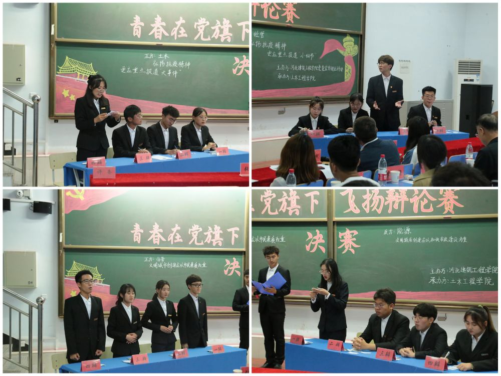 为进一步丰富党史学习教育载体,推动学习教育走深走实,巩固思想政治教育成果,6月9日晚,由校党委宣传部、社科部主办,土木工程学院承办的“青春在党旗下飞扬”辩论赛决赛在明德楼110教室举行。