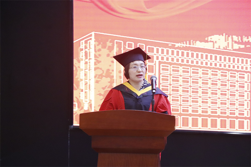 典礼上,校学位评定委员会主任、校党委书记王海龙教授宣读《关于表彰2021年校级优秀硕士学位论文的决定》《关于授予杨兴然等109名毕业生硕士学位的决定》。随后,校领导为校级优秀硕士论文获得者颁发证书,并为109名毕业生颁发学位证书、行“拨穗礼”。