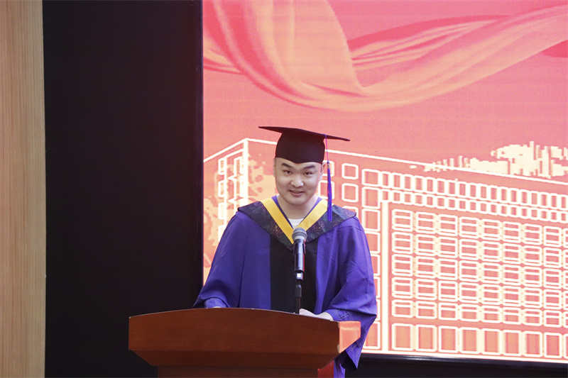 建筑与艺术学院刘浩同学代表全体毕业研究生发言。他回顾了三年的硕士求学历程,不舍之情溢于言表。他深情感谢了母校和导师的培养,并表达了对母校和导师的美好祝愿,同时倡议要热爱母校,珍重师生、同学之间的友谊,勇于担当,为母校争光。土木工程学院阎杰副教授代表全体导师发言。她表达了导师们对毕业生的良好祝愿;勉励研究生们保持学习的热情,发扬团队合作精神,勤于思考;祝福研究生们踏上新的起跑线,开始生命新的搏击,迎接命运新的挑战。