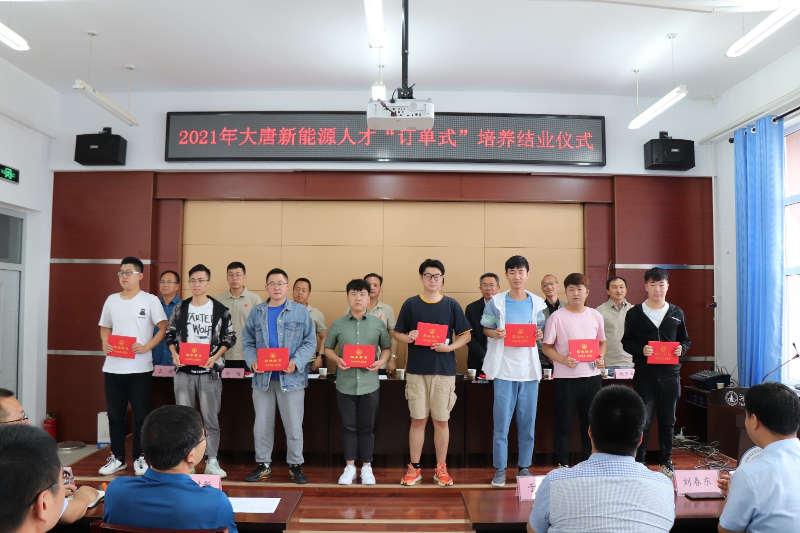 在结业仪式上,大唐京津冀能源开发有限公司张家口新能源事业部朱海元总经理对我校在新能源人才“订单式”培养工作中的辛勤付出表示衷心的感谢。他表示,“双碳”目标的提出和新能源技术的不断进步为新能源行业的发展提供了更为广阔的空间,此次与学校的联合培养,标志着校企间向共享“双赢”模式迈出了具有实质性的关键一步,是应社会所需、与市场接轨的重要举措,对高校和企业都具有极为重大的战略意义。