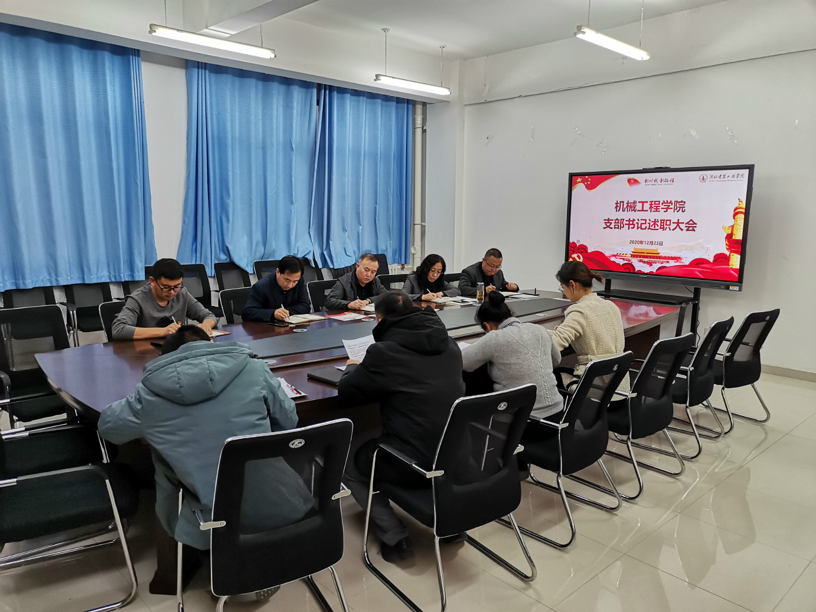 为全面检验机械工程学院各党支部党建工作成效,推动全面从严治党向基层延伸,强化基层党支部书记“第一责任人”意识,12月23日下午,机械工程学院党委召开2020年度党支部书记现场述职评议会议。学院党委委员、四个师生党支部书记和支委参加会议。会议由院党委书记王洁主持。
