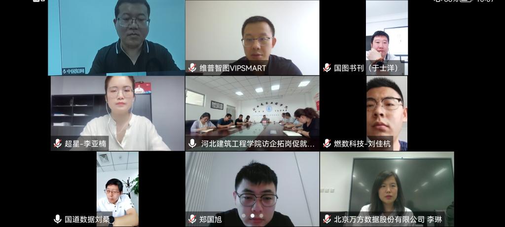 6月16日,信息管理系在图书馆A303举办了云端“访企拓岗”座谈会,参加座谈会的有副校长张立群、信息管理系领导班子成员及教师代表。会议邀请国道数据、北京超星公司、国图书刊有限公司、燃数科技公司、维普智图科技公司、北京万方数据公司、中国知网河北分公司等7家企业代表参加。会议由信息管理系党总支书记杜占江主持。