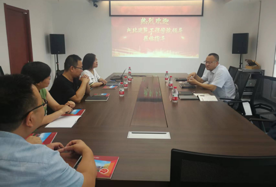 赵海军此行走访了中联合盛科技有限公司(中土诚联工程建设有限公司)、严一建设集团有限公司、河北拓扑建筑设计有限公司等三家单位。在中联合盛科技有限公司会议室校企双方举行了座谈会,中联合盛科技有限公司设计院院长张学玲、严一建设集团工程总监许峰、拓扑设计机电院院长尹利科分别介绍了各自企业的发展历程、业务范围、精品工程、发展规划以及人才需求。