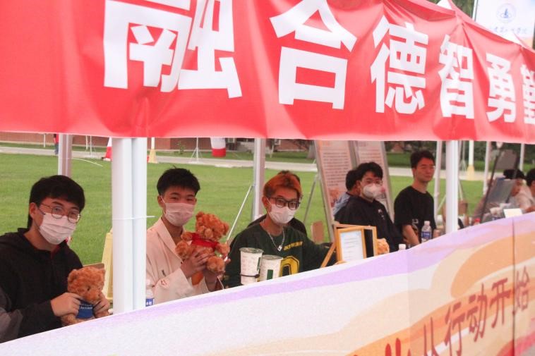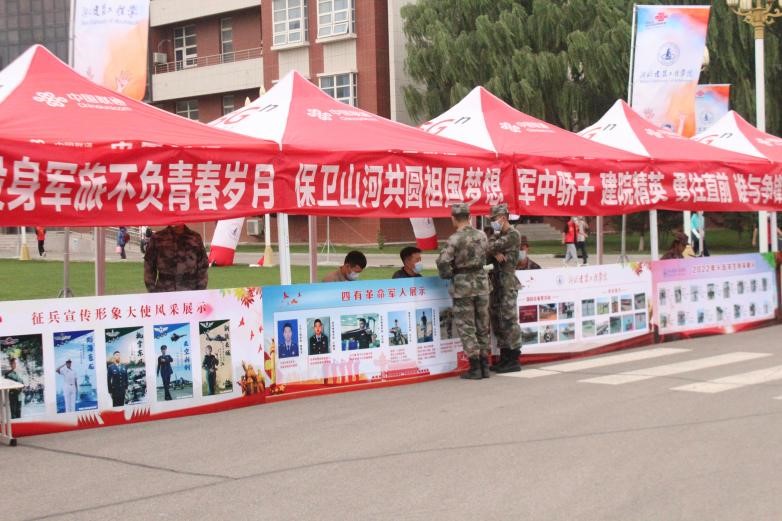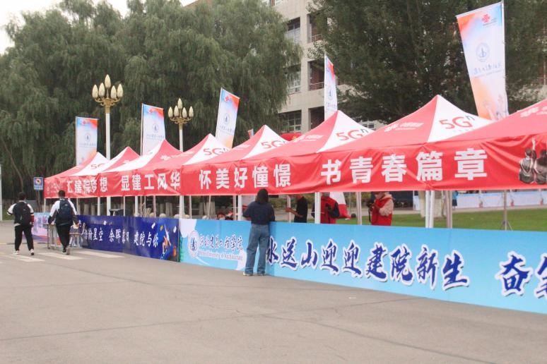 迎新活动现场,共设置了新生咨询、绿色通道、征兵入伍咨询三个服务站,创新创业成果展示、就业考研成果两个展示区,以及十一个院系报到点。