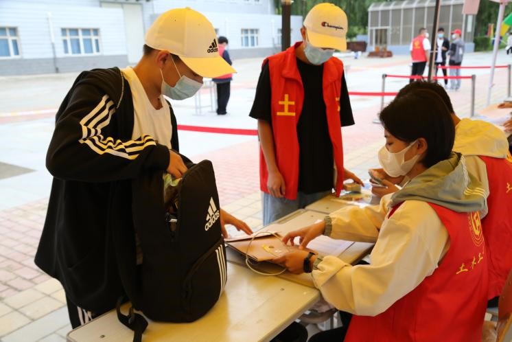 全体学工人员、后勤保卫人员、师生志愿者深入一线,分批轮岗轮值,精心安排迎新报到志愿服务工作。为新生提供抗原检测试剂盒、测量体温、核验入校材料,全力以赴为新生做好服务工作。