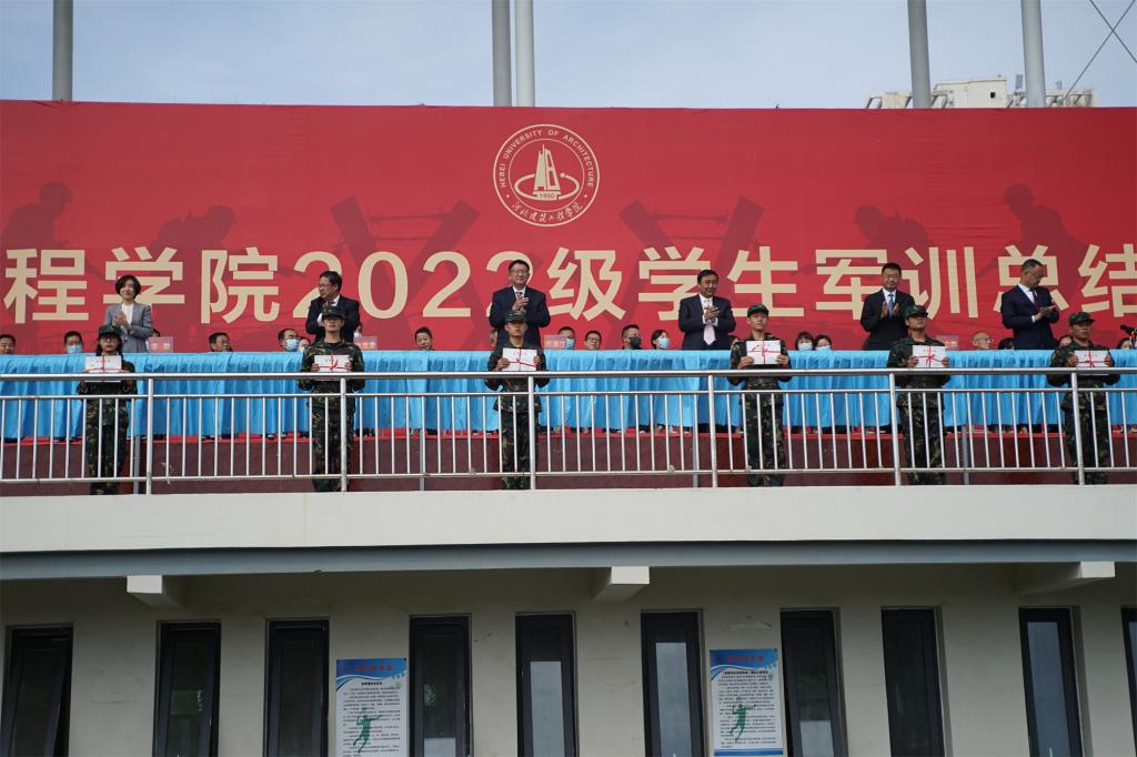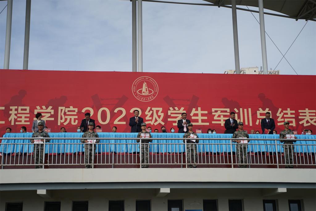 汇报表演结束后,翁维素宣读了《2022级学生军训先进集体、先进个人的表彰决定》,与会领导为军训“先进营”、“先进连”、“优秀教官”、“优秀教师”和“优秀学生”等先进集体和个人颁奖。