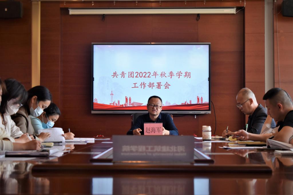 9月27日上午,校团委在崇德楼A407会议室召开新学期共青团工作会议,副校长赵海军出席会议并讲话,校团委全体工作人员、各院系团委书记、学生会主席团成员参加会议,会议由校团委书记李晓庆主持。