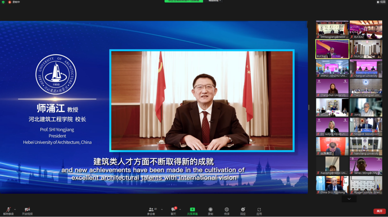 本次国际会议以线上形式召开,以“筑撷硕果•筑联五年•筑启未来”为主题,共吸引来自中国、英国、法国、波黑、波兰、意大利、塞尔维亚、希腊、俄罗斯等14个国家40余所高校与机构的200余名代表参加。 2017年10月10日,为了响应落实“一带一路”倡议,我校以联盟发起成员身份,与北京建筑大学等国内外建筑类高校成立“一带一路”建筑类大学国际联盟。“联盟”成立五年来队伍不断扩容,至今已有28个国家的74所院校加盟成为会员。