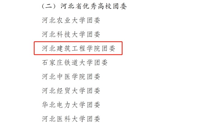 近日,共青团河北省委发布了《关于2022年度全省共青团述职考核结果的通报》,经择优评选、逐级推报、严格审核、述职考评,我校团委被授予2022年度“河北省优秀高校团委”称号。
