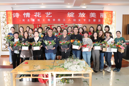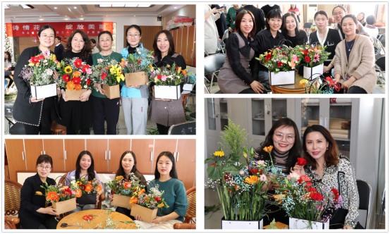 在插花作品完成后,大家手捧鲜花,留下自己的美丽瞬间。本次插花活动极大的丰富了女同胞们的精神文化生活,让女教职工们在纷繁的工作生活之余,度过了一个轻松浪漫的温馨节日。