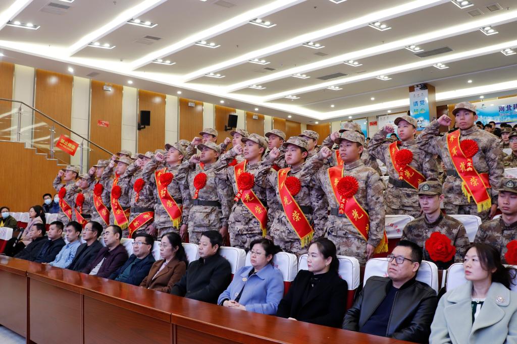 师涌江代表学校党政领导及全体师生向应征入伍的同学们表示热烈的祝贺,向一直以来支持、参与我校征兵工作的军分区和桥东区人武部领导表示衷心的感谢。他希望各位入伍同学牢记全心全意为人民服务的根本宗旨,肩负实现中华民族伟大复兴的历史使命,努力把自己培养成为有灵魂、有本事、有血性、有品德的新时代革命军人,为实现强国梦强军梦贡献“建院力量”!同时,他也对退役复学的同学们提出了三点希望:一要珍惜荣誉,不忘军营的历练,永葆军人本色;二要做到退伍不落伍,在我校“国防后备营”中继续发挥标兵作用,为学校的国防教育、爱国主义教育再作新的贡献;三要尽快完成角色转换,将保家卫国的壮志与青春热血的豪情投入到新的人生旅程。
