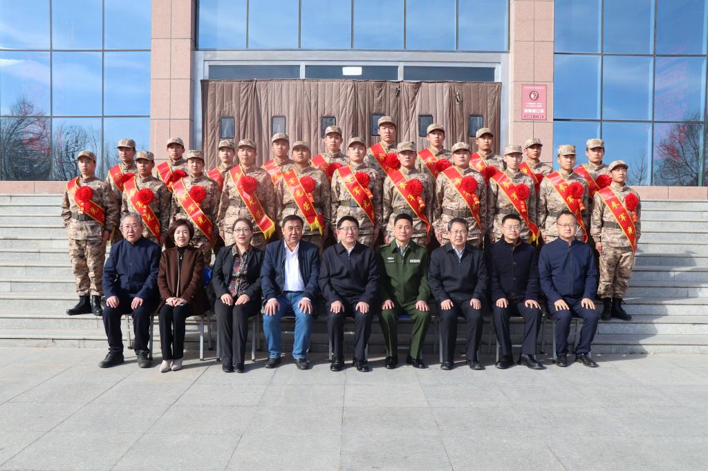 会后,与会领导与即将入伍的新兵进行合影留念。