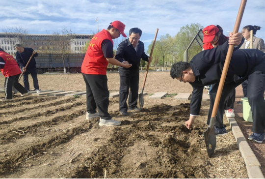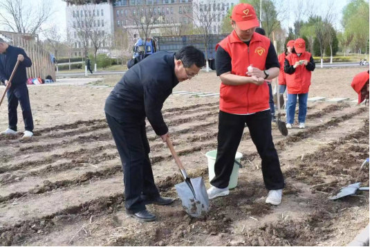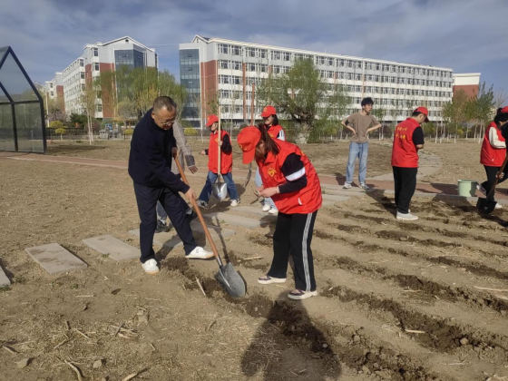 春风和煦,万象更新。为深入贯彻落实党的二十大精神和习近平总书记“绿水青山就是金山银山”的生态文明理念,4月18日下午,学校在体育场北侧花圃基地开展“践行生态文明理念·共建大美绿色校园”义务种植向日葵活动。校党委书记师涌江、校长翁维素、副校长赵海军、校团委全体老师和青年志愿者代表30余人参加活动。