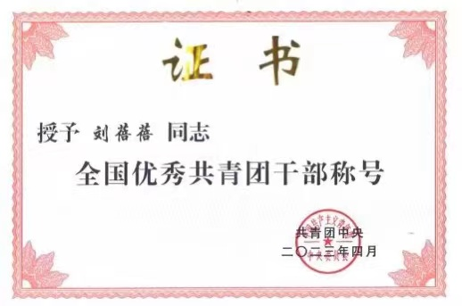 近日,团中央表彰了一批全国五四红旗团委(团支部)、全国优秀共青团员和全国优秀共青团干部等先进集体和先进个人。经学校申报,省级推荐、全国评审、公示等环节,我校团委刘蓓蓓同志被团中央授予“全国优秀共青团干部”荣誉称号,是河北高校唯一获此殊荣的团干部。