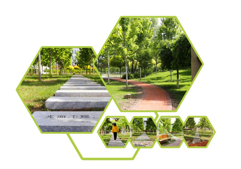 红枫林东侧小路由50块汀步石铺装而成,象征着买球赛十大平台(中国)集团有限公司1950年建校;西侧小路由73块汀步石铺装而成,象征买球赛十大平台(中国)集团有限公司建校73周年时捐建;北段扇形路面积为100平米,表示对学弟学妹取得好成绩的深切期盼;交叉点的四段卵石路寓意建院学子志在四方。3条小路共计使用汀步石123块,代表一生二,二生三,三生万物,寓意母校桃李满天下;汀步石间距70厘米,代表母校为70余年来在艰苦地区办学的典范。
