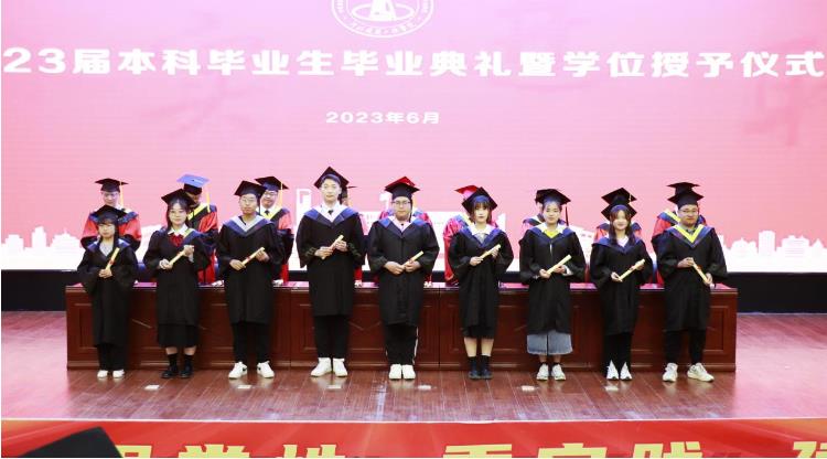 6月16日上午,我校在新能源报告厅举行2023届本科毕业生毕业典礼暨学位授予仪式。校领导师涌江、翁维素、李双群、姚冰、张立群、李敏、赵海军出席典礼,副校长赵海军主持典礼。