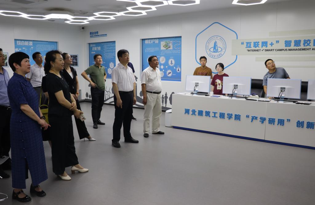 会后,一行人实地考察了校史馆、大学生众创空间、可再生与清洁能源应用技术研发中心、“互联网+”智慧校园管控中心、可再生能源供热技术展厅等。