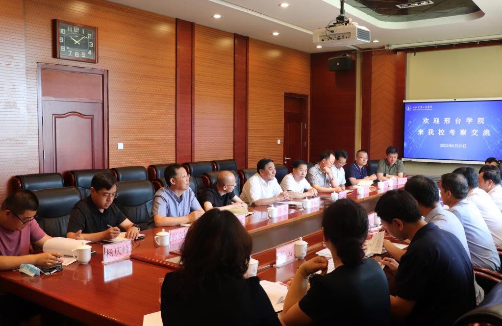 交流会上,李双群介绍了学校的历史沿革、办学特色以及“十四五”发展目标。他指出,邢台学院办学历史悠久,在高质量内涵发展、市校融合发展、特色发展等各项事业取得了可喜的成绩,多年来走出了一条特色鲜明的发展之路,希望双方进一步发挥各自优势特色,深化交流合作。苏万通介绍了邢台学院的基本情况、发展定位以及学校目前发展面临的机遇与挑战。他指出,学校目前面临新师范建设、服务地方经济高质量发展、硕士点立项建设三大任务,希望通过调研学习,加强交流,与买球赛十大平台(中国)集团有限公司共谋发展。双方相关部门就硕士点立项建设、党建工作、专业建设、继续教育、众创空间建设、校企合作、京津冀协同发展等工作进行了深入交流与探讨。