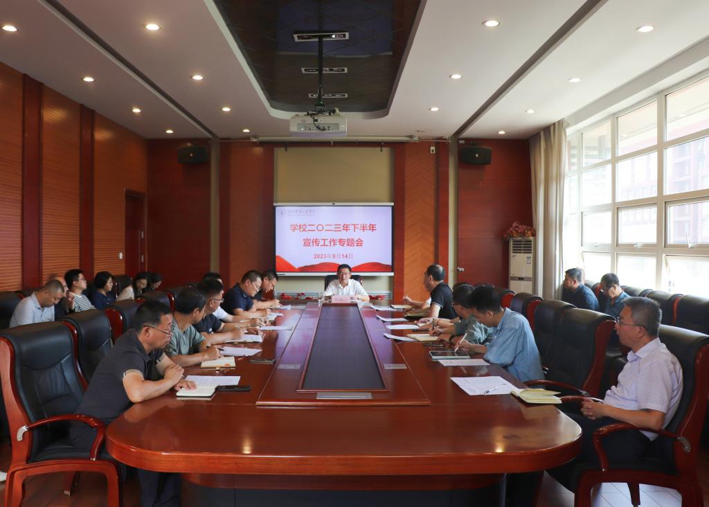 9月14日下午,我校在崇德楼A307会议室召开学校2023年下半年宣传工作专题会。学校党委书记师涌江主持会议,宣传部、学生处、研究生处、人事处、教务处、科研处、校园安全与后勤管理处、团委、现代教育技术中心以及各二级党组织负责同志参加了会议。