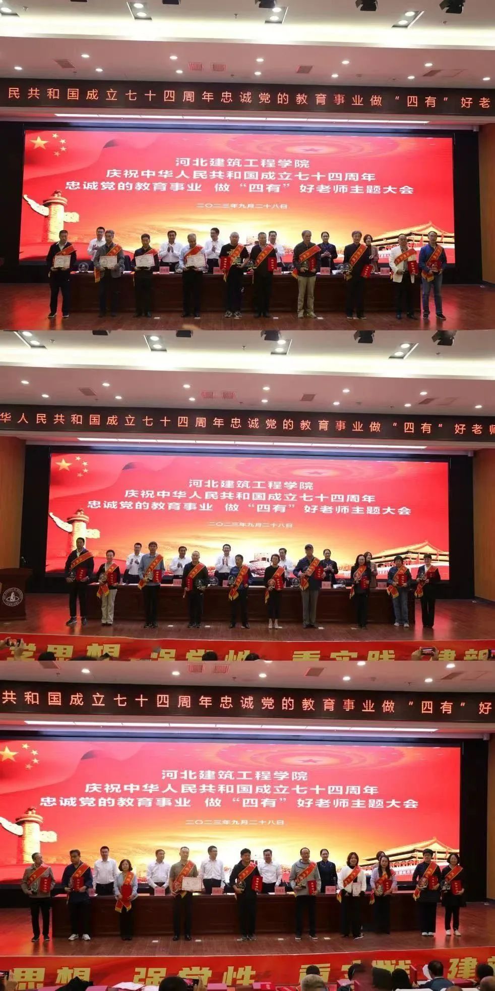 校党委书记师涌江在会上讲话,他代表学校党委向辛勤工作在教学科研、管理服务一线的全体教职员工致以节日的问候,向受到表彰教师表示热烈的祝贺。回顾了学校历史及各方面取得的成就,同时指出2022年底,我校更名大学正式列入《河北省“十四五”高等学校设置规划》,今年以来,学校全面贯彻落实党的二十大精神,深入开展学习贯彻习近平新时代中国特色社会主义思想主题教育,加快实施“十四五”事业发展规划,大力推进“河北建筑大学”建设工作,取得了一系列积极成效。他提出了三点意见:一是坚守立德树人根本任务,提升思政育人实效,做新时代培根铸魂的大先生;二是夯实师德师风坚实基础,提升思想育人能力,做新时代身正为范的大先生;三是树牢以学生为中心的教育理念,提升教书育人本领,做新时代常学常新的大先生。要求全体教师应该将自我实现与学校发展、国家建设、民族复兴有机统一起来,迈出新步伐、闯出新路子、彰显新担当、展现新作为,为推进中国式现代化建设河北篇章贡献建院力量!