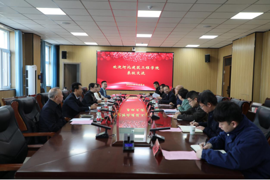 在新疆生产建设兵团兴新职业技术学院,我校一行在看望援疆教师的同时就两校加强合作、教师援疆工作等事宜进行深入交流,兵团兴新职业技术学院党委书记李泽龙、兵团第二师科学技术局局长文武等参加座谈会。我校领导详细了解了援疆工作情况,对派出教师表示亲切慰问,并对后续工作提出要求。座谈中我校领导表示,双方应以教师援疆工作为契机,进一步加强合作,共同探索建立专业群互补、特色互渗、优势共享的合作模式。巴州与河北省是对口援助单位,民族大团结,高校一家亲,我们要做好援疆工作,就应携手并进,共同奔赴高质量发展。对新疆生产建设兵团兴新职业技术学院提出的在防灾专业建设、建筑学专业合作,新能源科研合作等实际项目,我校将以最快的速度,最优的技术,最实的工作,最可行的方式尽快予以落实,并形成两校定期沟通机制,完善落地。我校一行还参观了新疆生产建设兵团兴新职业技术学院校史馆、机电工程学院、建筑工程学院、现代服务学院等,对其管理制度、学生培养、教学特色、实训环境等进行充分了解,并就双方专业群建设思路、教学科研路径、人才培养举措等方面开展深入交流。