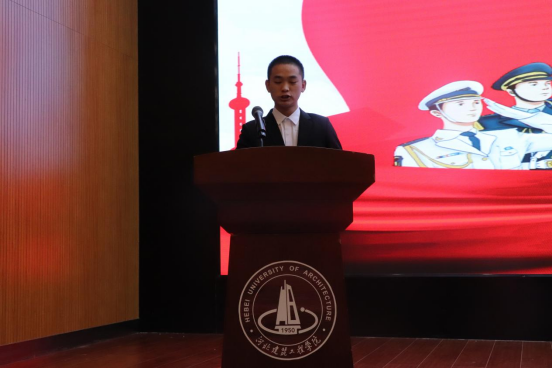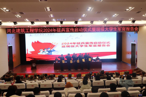 与会领导为征兵宣传形象大使颁发了聘书。车辆201班任红阳同学作为报名参军学生代表向学校给予的支持表示了深深的感谢,表达了对部队的憧憬和向往,以及绝不辜负领导、老师期望的决心。退役大学生士兵计科223班冯天乐同学分享了个人的军旅历程,讲述了自己的成长与收获,并向广大同学发出了参军报国的倡议。