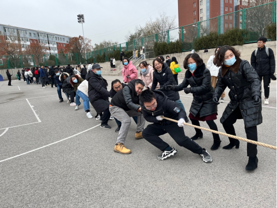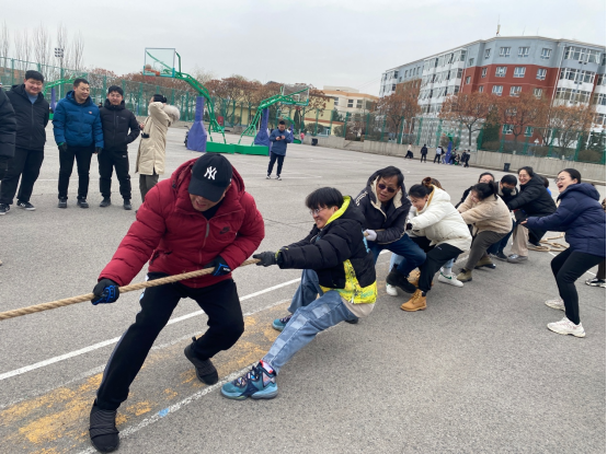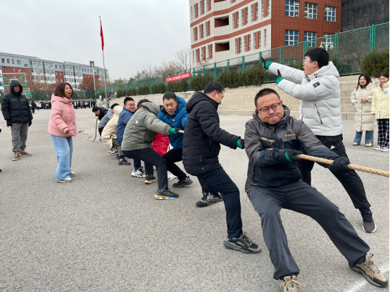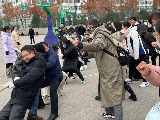 为丰富教职工文体生活,增强凝聚力,激发教职工参与体育健身的积极性,11月28日,学校教职工拔河比赛在立德楼东侧灯光操场举行。