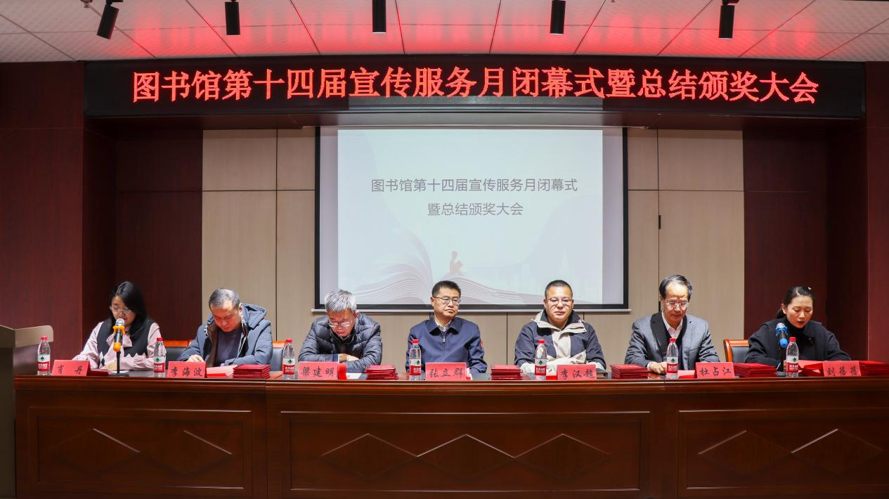 12月5日,图书馆召开第十四届宣传服务月闭幕式暨总结颁奖大会。副校长张立群出席闭幕式并讲话,出席闭幕式的还有党委宣传部部长李汉超、教务处处长梁建明、学生处副处长李海波、校团委副书记刘蓓蓓、图书馆馆长杜占江。会议由图书馆副馆长肖丹主持。
