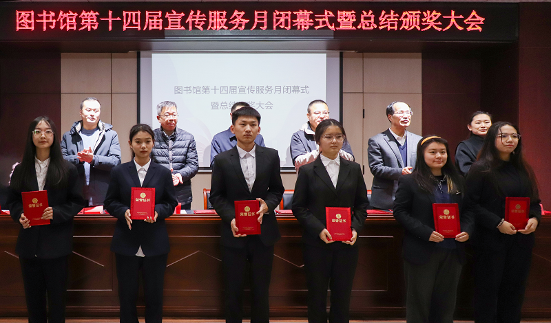杜占江对第十四届图书馆宣传服务月进行了总结。刘蓓蓓宣读了各项活动的获奖名单。与会领导向各项活动获奖者颁发了获奖证书。建筑221班许淼淼同学代表获奖同学发言。