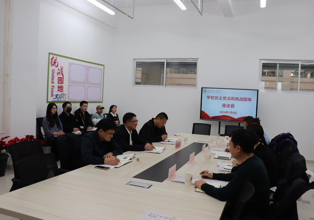 1月5日,学校在“统战之家”活动室召开民主党派和统战团体座谈会。学校党委书记师涌江、党委统战部全体成员以及学校各民主党派和统战团体代表出席了会议。会议由学校党委统战部部长李汉超主持。