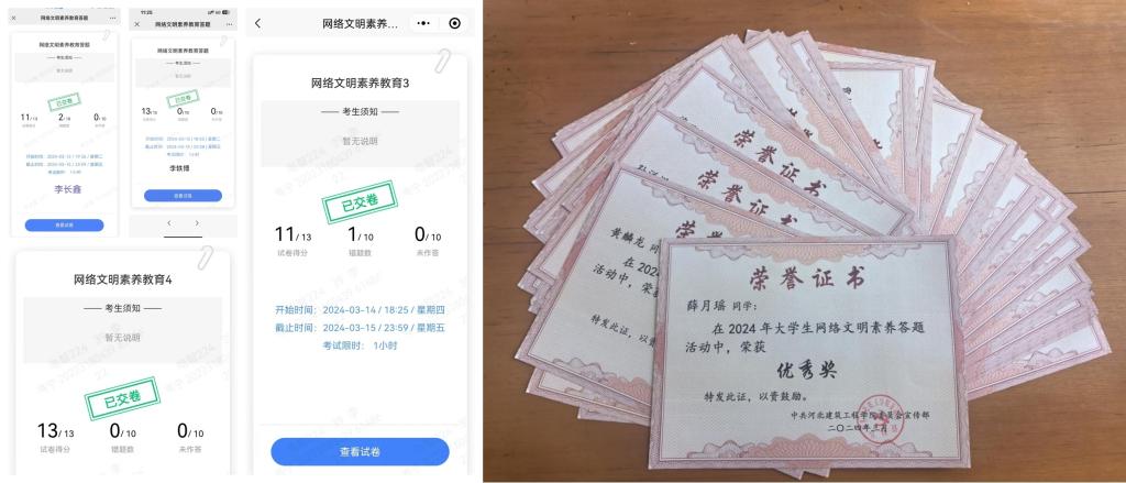 广泛传播网络文明知识,营造网络文明教育氛围。学校充分利用“三微一端”、电子显示屏、校园海报、橱窗展板等媒介,积极开展网络文明宣传活动。活动期间,学校发布大学生“文明上网”倡议书、定期推送“文明上网,让文明信号‘满格’”“网安守护(一)(二)”“文明上网‘十不要’!好网民这样养成”等文章,并倡导各班级群内转发学习。学校组织动员了覆盖全校范围的“构筑清朗网络空间 从你我做起”的线下签名承诺书和大学生网络文明知识答题竞赛,竞赛涵盖了密码安全、个人信息保护、网络行为规范、网络道德伦理等多个方面。答题比赛虽然仅持续一周,但答题参与人数多达5000余人次,满分答卷300多份,充分展示了我校学生较强的网络文明素养和扎实的网络安全知识。