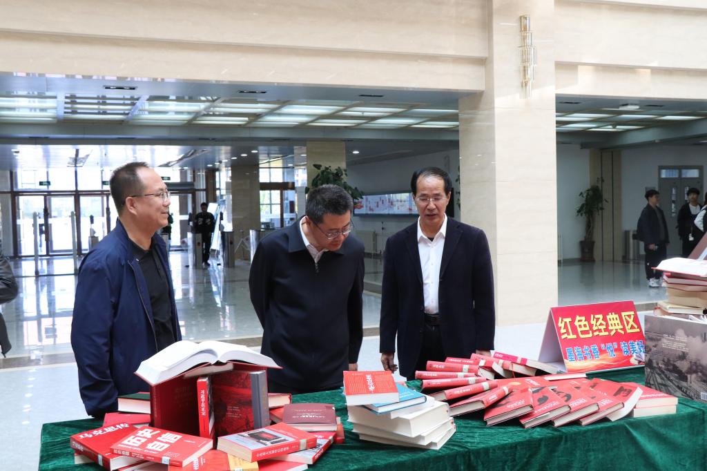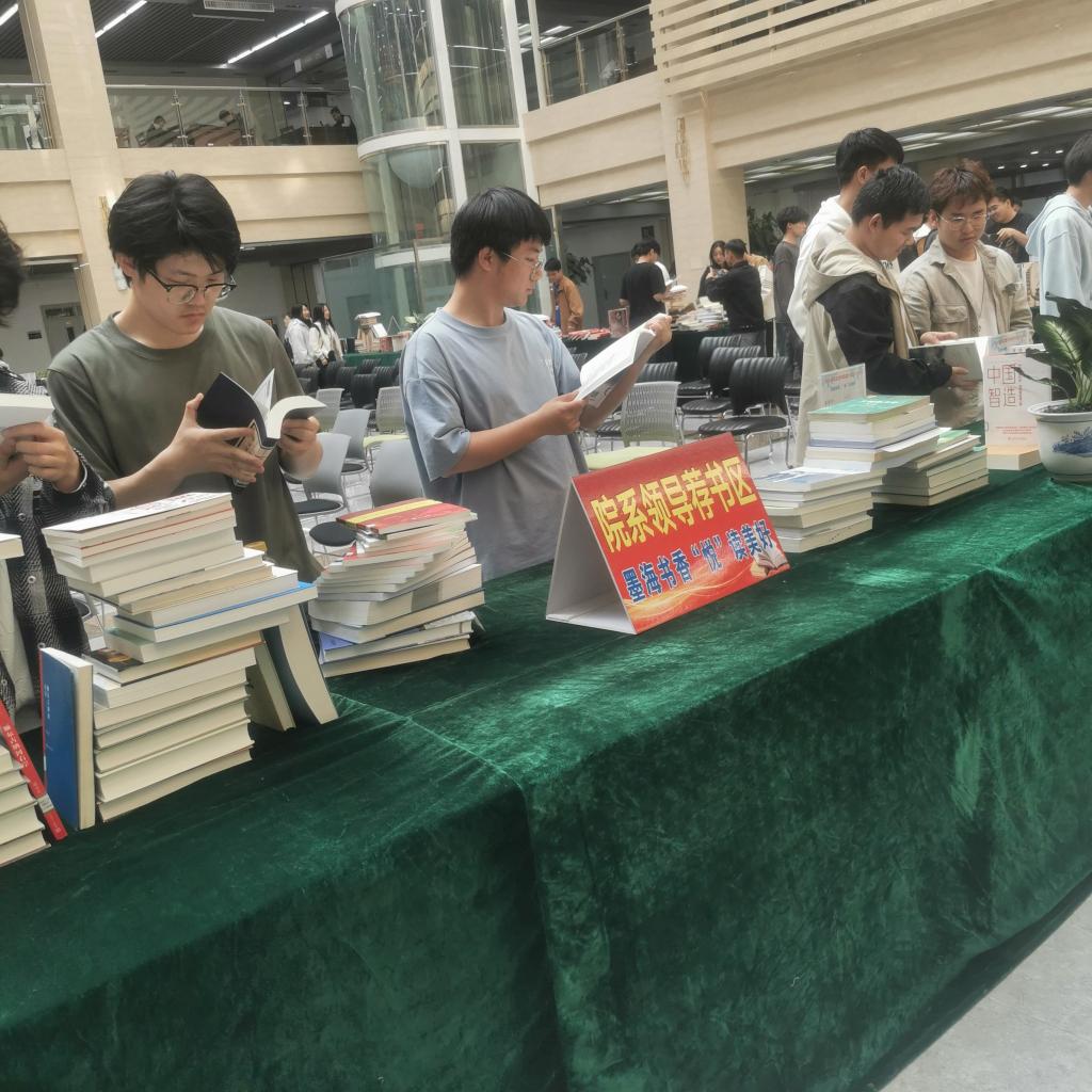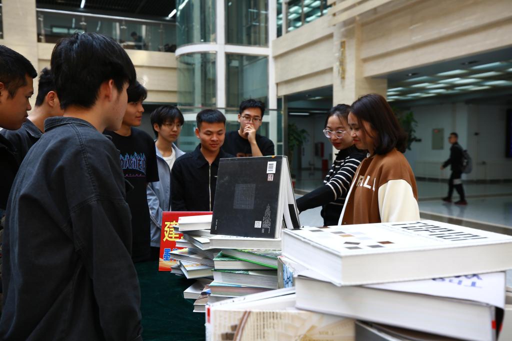 参加活动的师生现场观摩了荐书展活动。荐书展分为“红色经典”、“国学经典”、“建筑经典”、“院系荐书”、“朋辈荐书”五个板块,展出各类精品图书上千册,吸引广大师生驻足阅读,在阅读中汲取精神力量。