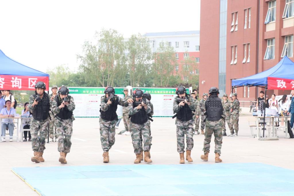 会后,与会领导们到征兵宣传活动现场和学生们进行了现场交流,参加了征兵宣传签名活动,观看了我校“国防后备营”的战术表演。