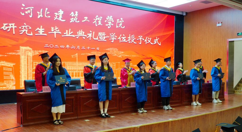 典礼上,副校长张立群、李敏、赵海军,纪委书记徐献彬分别宣读了学校《关于授予2024届研究生硕士学位的决定》《关于表彰2024届河北省优秀毕业生的决定》《关于表彰2024年校级优秀硕士学位论文的决定》和《关于表彰2024年校级优秀硕士学位论文指导教师的决定》。校领导为全体毕业生颁发学位证书、行“拨穗礼”并为全体获奖师生颁发荣誉证书。