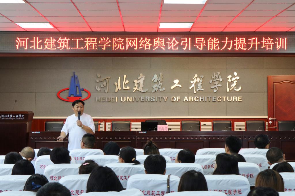 7月3日,我校在崇德楼A306会议室举办了“提升网络舆论引导能力”讲座。本次培训主讲嘉宾为中央网信办骨干网评员、全国骨干网评员舆论引导线上培训讲师、秦皇岛市委网信办张海涛老师。校长翁维素、各二级党组织书记、副书记、院系学工办主任、专职思政课教师、专职辅导员及网评员80余人参加了此次活动。讲座由党委宣传部部长李汉超主持。