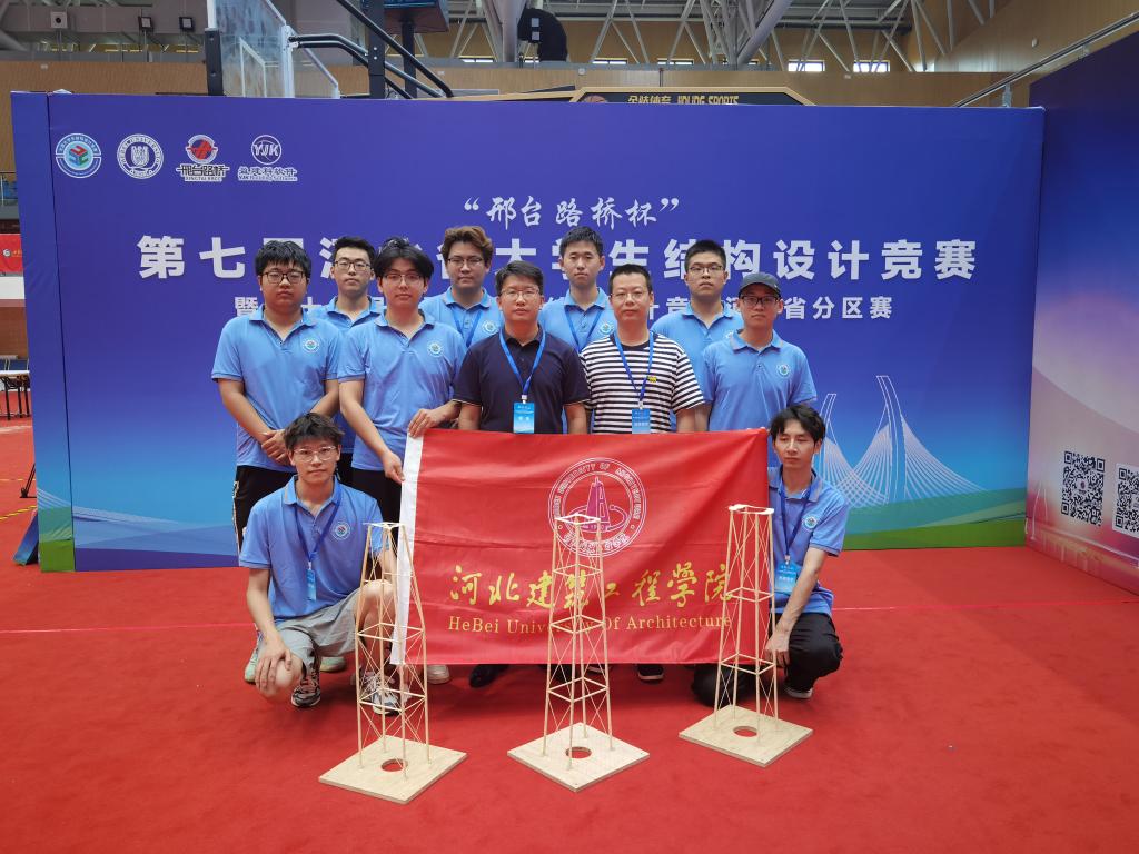 7月22日至24日,“邢台路桥杯”第七届河北省大学生结构设计竞赛暨第十七届全国大学生结构设计竞赛河北省分区赛在河北大学举行。经过12小时的现场模型制作、陈述答辩、模型加载等环节的激烈比拼,我校代表队脱颖而出,荣获一等奖2项,三等奖1项,并获得了代表河北省参加第十七届全国大学生结构设计竞赛的资格。