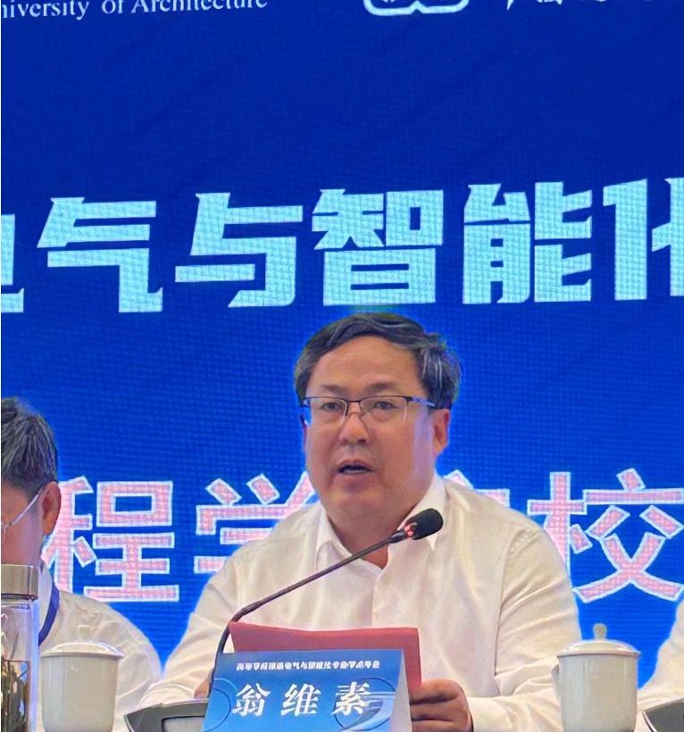 翁维素在开幕式上致辞,代表学校对与会专家学者表示欢迎。他简要介绍了学校的发展历程、办学特色和近年来取得的成绩,及电气工程学院的办学历史与发展,感谢与会专家学者对我校建筑电气与智能化专业建设的帮助与支持。他希望借助教指委提供的交流平台,能够在一流专业、教材、虚拟教研室等建设和专业认证等工作中互学互鉴,共同推动建筑电气与智能化专业高质量发展,同时希望各位专家学者为我校学科专业建设提宝贵建议,对我校建筑电气与智能化专业提供指导帮助。