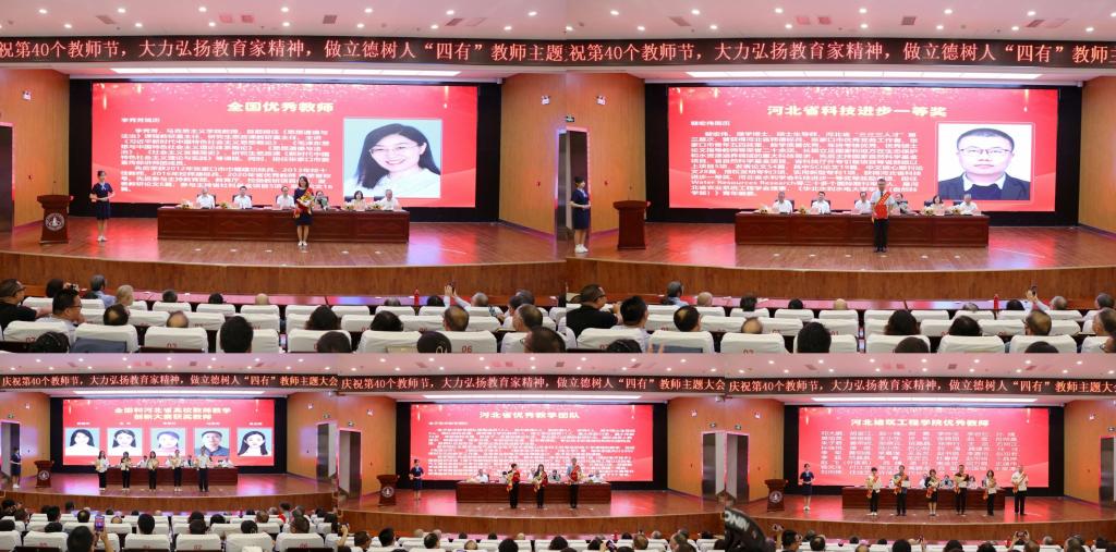 会上,学生代表向老师们献上真诚的节日祝福,校领导为获得全国、河北省、校级荣誉的教师代表颁奖,并为从教30年教师、荣退教师颁发荣誉证书。全国优秀教师李秀芳教授、青年教师代表赵聪聪博士、退休教师代表南国英教授分别发言。