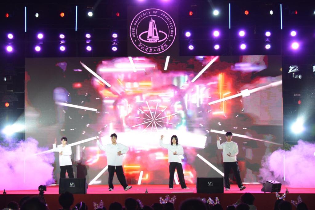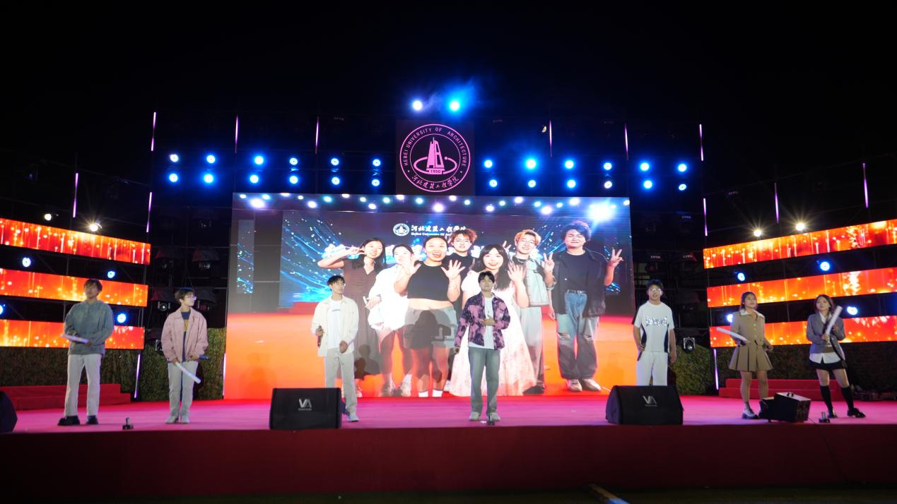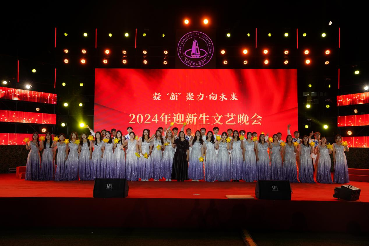 大学生艺术团带来的《我们一起闯》率先点燃了全场气氛,奏响了晚会的序曲。全体新生手摇荧光棒闪出多彩青春,演绎着属于建院人的璀璨篇章。