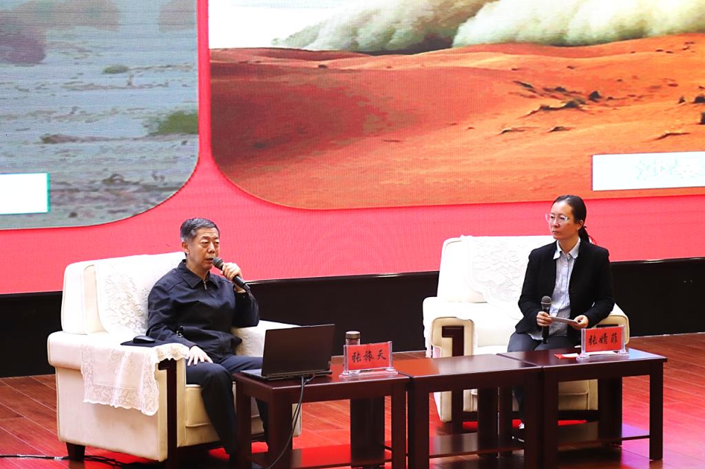 随后,张旅天老师以《有个地方叫马兰》为题,从60年前震撼人心的“东方巨响”为切入点,深情追忆了父亲张蕴钰等老一辈中国核事业建设者们克服难以想象的困难,立志造出中国人自己的“争气弹”的奋斗历程,引领新时代的青年向先辈的奋斗致敬。作为我国核试验基地第一任司令员,张蕴钰将军与程开甲、林俊德等科学家和战士们舍小家为大家,自力更生、艰苦奋斗,奋战在西北戈壁滩数十载,用实际行动彰显了“干惊天动地事,做隐姓埋名人”的马兰精神。