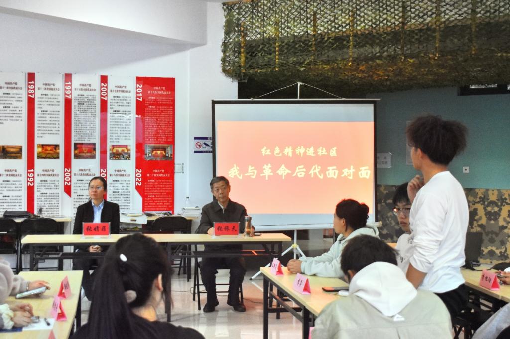 访谈结束后,特邀嘉宾一同走进我校“一站式”学生社区开展“红色精神进社区—我与革命后代面对面”交流分享会,与我校青马学员、团学干部、“一站式”学生社区代表进行面对面交流,勉励青年学子从红色文化中汲取精神养分,始终不渝做马克思主义的忠诚信奉者和坚定实践者。下一步,学校青年马克思主义学院将继续用好红色资源,创新爱国主义教育组织形式,讲好红色故事,多形式加强青年大学生爱国主义教育,激发广大学生立报国强国大志向,做挺膺担当奋斗者,为推进强国建设、民族复兴伟业贡献青春智慧和力量。